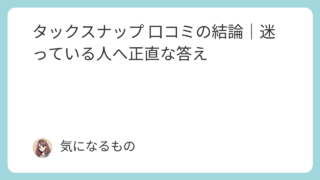 気になるモノ タックスナップ 口コミの本音|初心者でも安心できる理由 タックスナップ 口コミの本当の評判について、分かりやすく解説します。「税金のこと、ちゃんとできるかな…」と不安になってい... 2026.02.16 気になるモノ