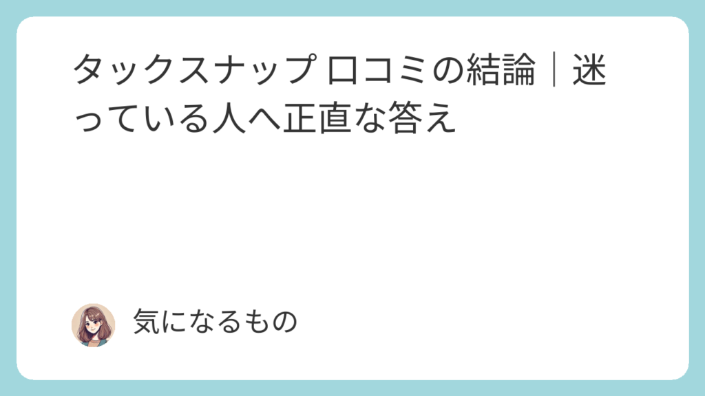 この記事では、良い口コミも悪い口コミも正直にまとめながら、タックスナップが自分に合うかどうかがハッキリ分かる内容にしました。